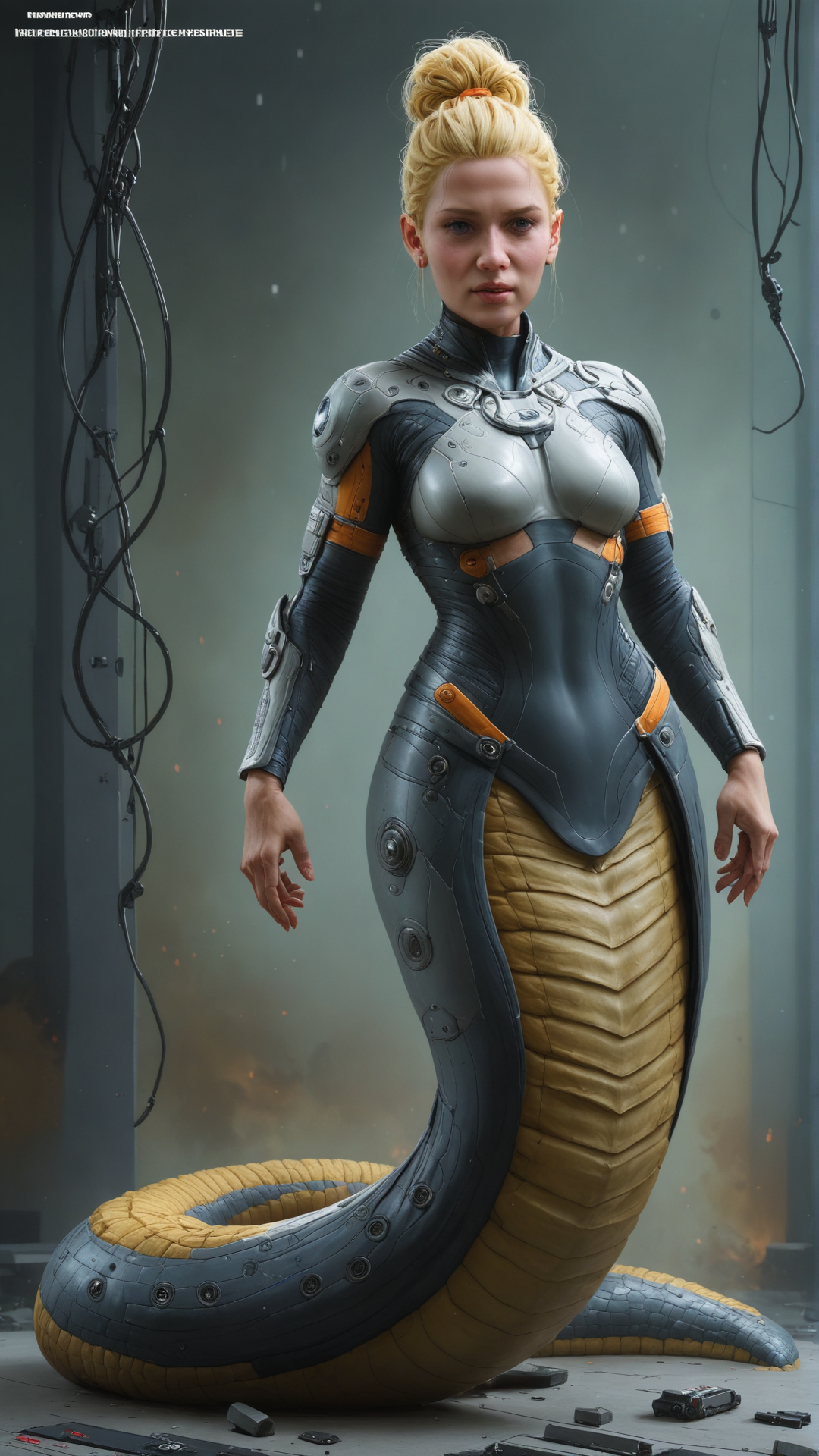 score_9, score_8_up, score_7_up, score_6_up, <lora:NagaPDXL:1>naga, full body, woman, Nanotech ninja medium blonde half-up half-down hairstyle in location: deep-space probe, detailed background environment, daytime