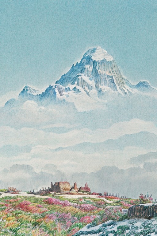 score_9, score_8_up, score_7_up, score_6_up, druuna style landscape, <lora:SD15_druuna_style:1>, <lora:Colored lead_20230801210009:0.82>,ghibli style, embedding:urn:air:sd1:embedding:civitai:6841@8042, colorful, magical, dreamlike, painterly, mountain staircase, a series of roughhewn rocky steps winds up the side of the mountain past rocky outcroppings and steep drop-offs, the snow-capped summit looms far in the distance, the mists cling to the surroundings and obscure the view, very detailed: 1.5,