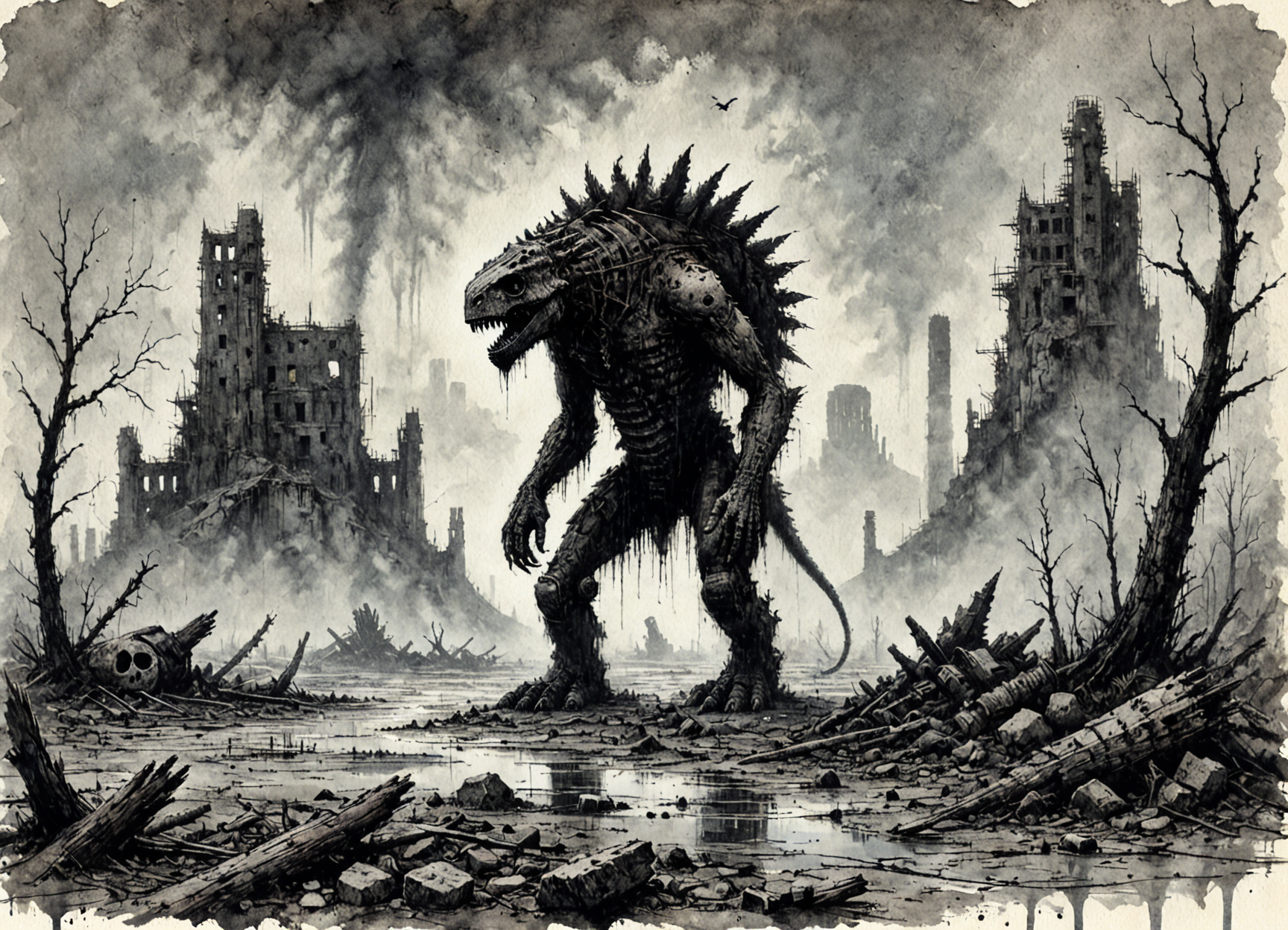 DonMN1h1l15mXL, ink,art povera, stonepunk, foggy, post-processing effects, re engine, constructivist, collage, prehistoric art, disney, splendid, 32k, radical, assonance <lora:DonMN1h1l15mXL:0.8>