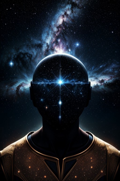 masterpiece, best quality, absurdres, illustration, photorealistic, cinematic lighting, dynamic angle, perfect composition, 1other, cosmic, god, faceless, no face, immense form, shimmering constellations, nebula background, galactic crown, ethereal energy, infinite power