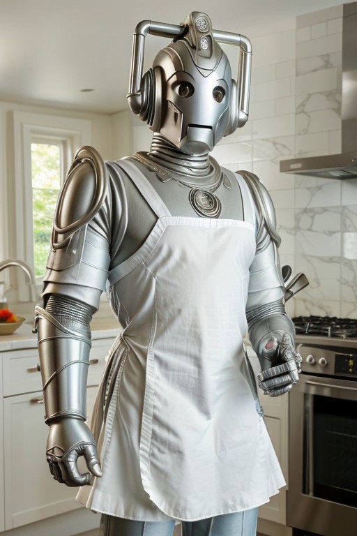 cyberman, classic cyberman, solo, kitchen, frilly apron
