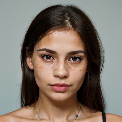 cinematic film still of <lora:skin texture style v4:1> very detailed skin pore A cinematic skin texture style still image of a woman with freckles on her face and a necklace, detailed wrinkles, skin tags, perfect skin tone color, stretch marks, hyperrealism, realism, unrealengine, realistic, detailed skin pore, film still, still photography style, sharp style, detailed style, perfect style, perfection style, Kodak film skin color tone style, fujifilm skin tone color style, professional photography style, skin textured, skin texture style, perfect face, perfect mouth, perfect nose, perfect lips, perfect eyes, perfect ears, perfect skin, perfect skin pores, perfect body, perfect hair, very detailed skin pores, perfect skin texture style, 1girl, solo, long hair, looking at viewer, simple background, black hair, parted lips, teeth, lips, watermark, blue background, portrait, web address, freckles, nose, brown hair, brown eyes, artist name, close-up, photorealistic, perfect small freckles , shallow depth of field, vignette, highly detailed, high budget, bokeh, cinemascope, moody, epic, gorgeous, film grain, grainy