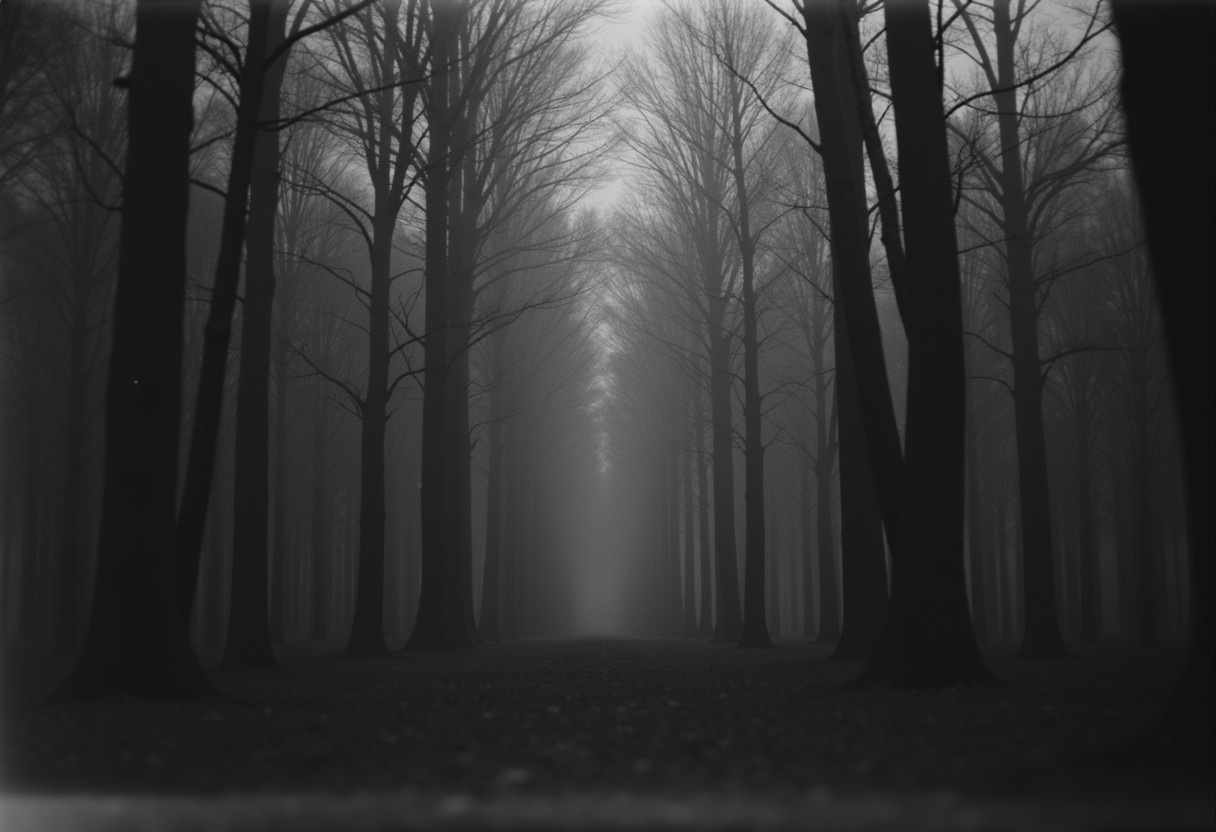 MF_AtomUltra, instagram photo, a creepy and dark and foggy forrest, hard shadows, film grain