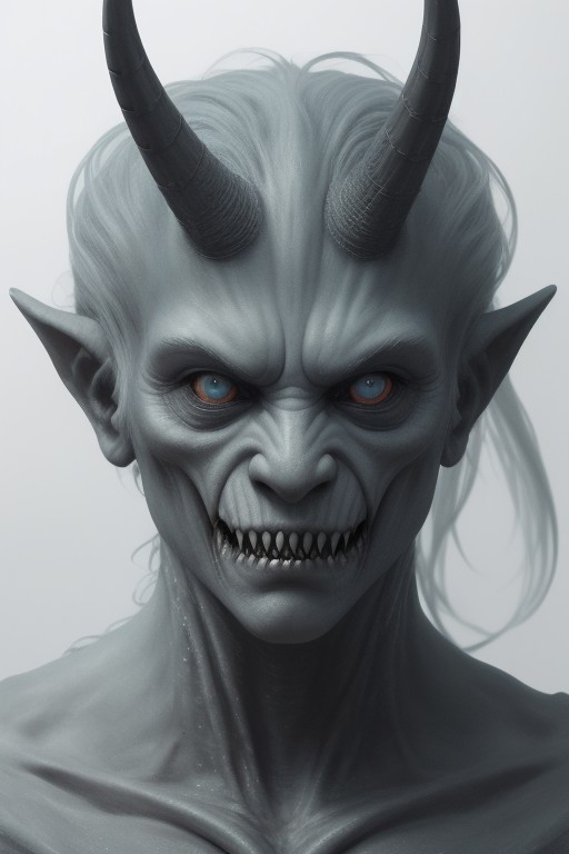 A creature with a menacing appearance, featuring sharp teeth, a horned head, and icy blue and white details, is captured in a close-up shot. The creature's skin appears rough and textured, with intricate details like scales and spikes. The background is dark, emphasizing the creature't's features. The image is of high quality, with sharp details and a realistic portrayal of the creature. masterful composition, visible brush strokes and fine lines, eerie atmosphere