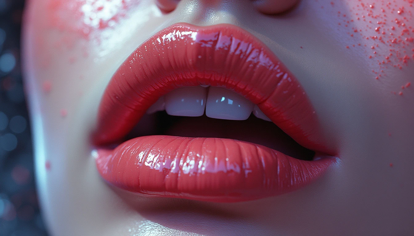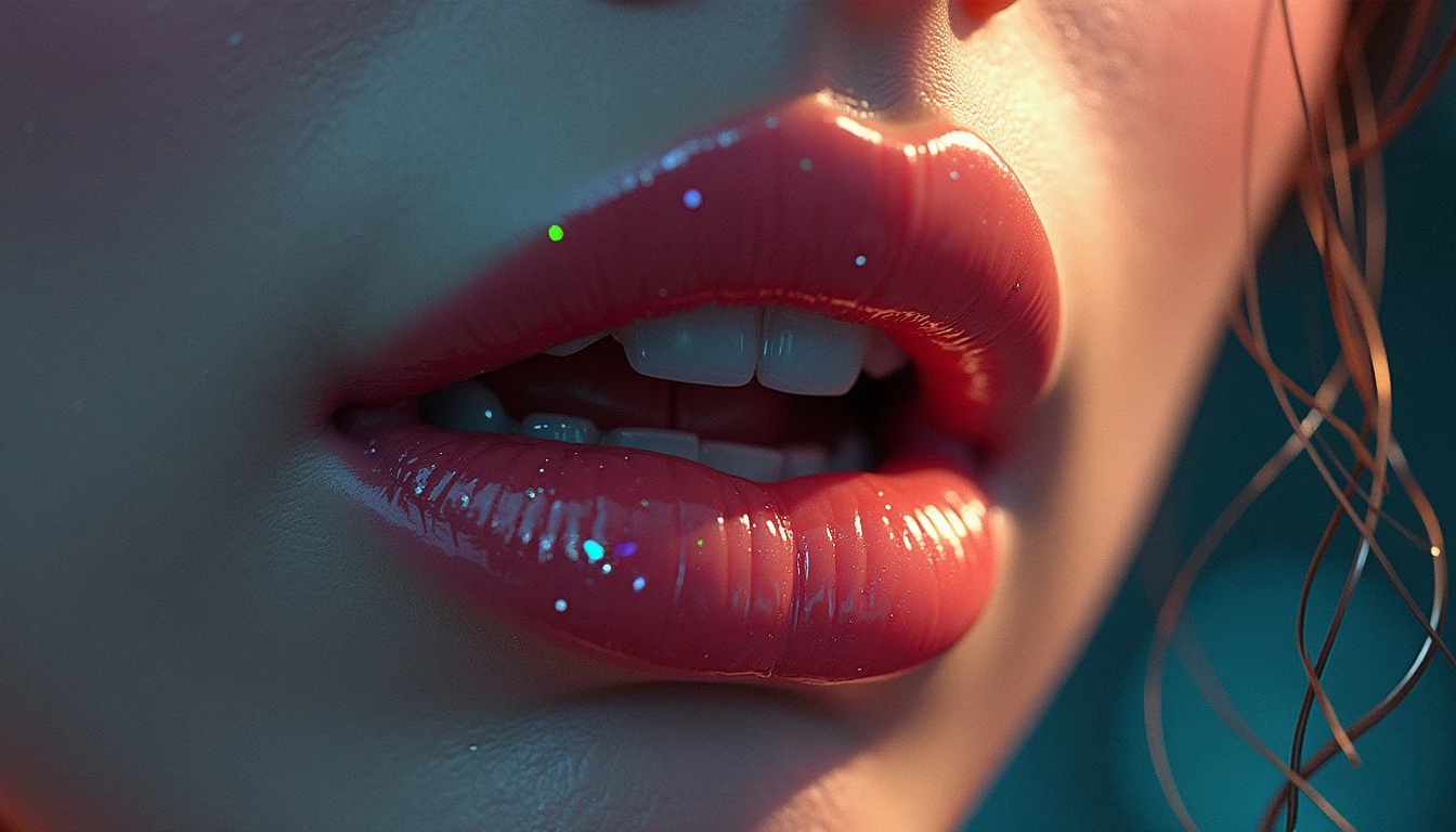An extreme close-up of a ultra realistic and Ultra detailed image, ultra realistic, ultra detailed artistic photography, ultra high-detail, cinematic lighting, concept art, epic, surrealistic, magic, mystical, art, creativity, macro photography, hyperdetailed, trending on artstation, sharp focus, studio photo, intricate details, highly detailed Masterpiece, realism, 2/3 rule composition, high quality, 8K Ultra HD, lips of a woman with a little opened mouth, fashion artistic and full creative and colored style