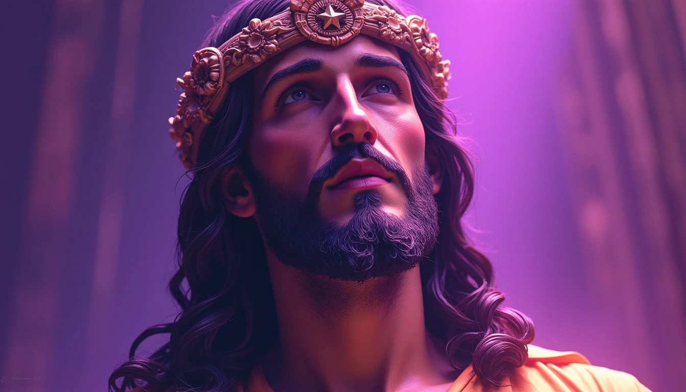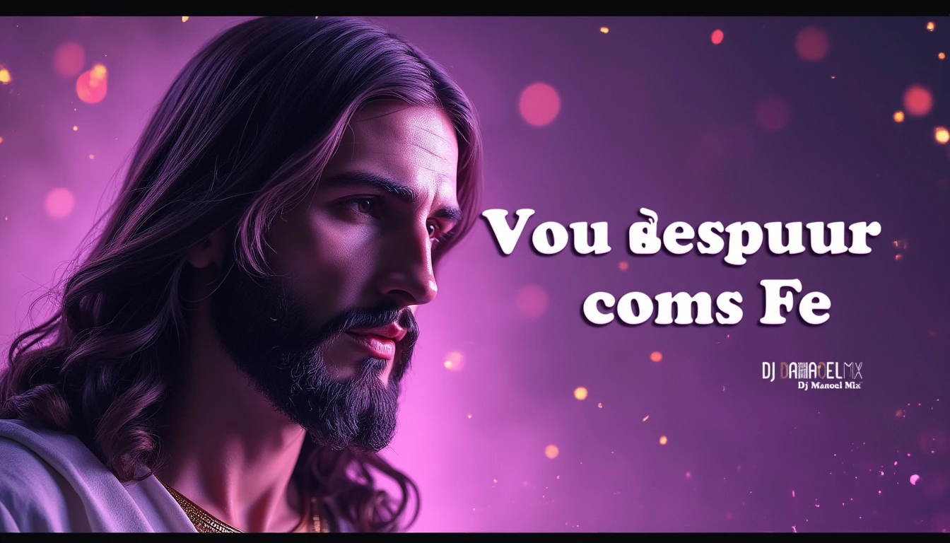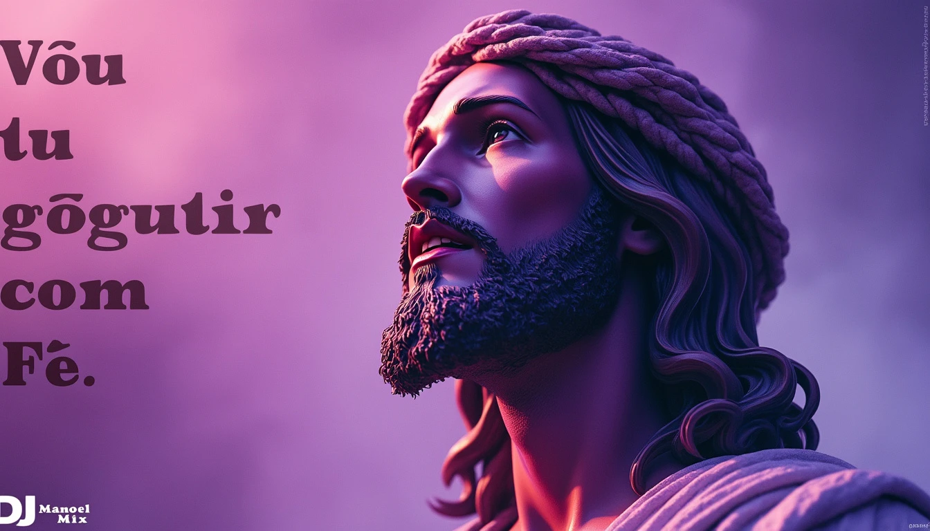 A hyper-realistic image of Jesus Cristo, text "Vou Seguir Com Fé", and the signature "Dj Manoel Mix". The background is a vibrant purple tone