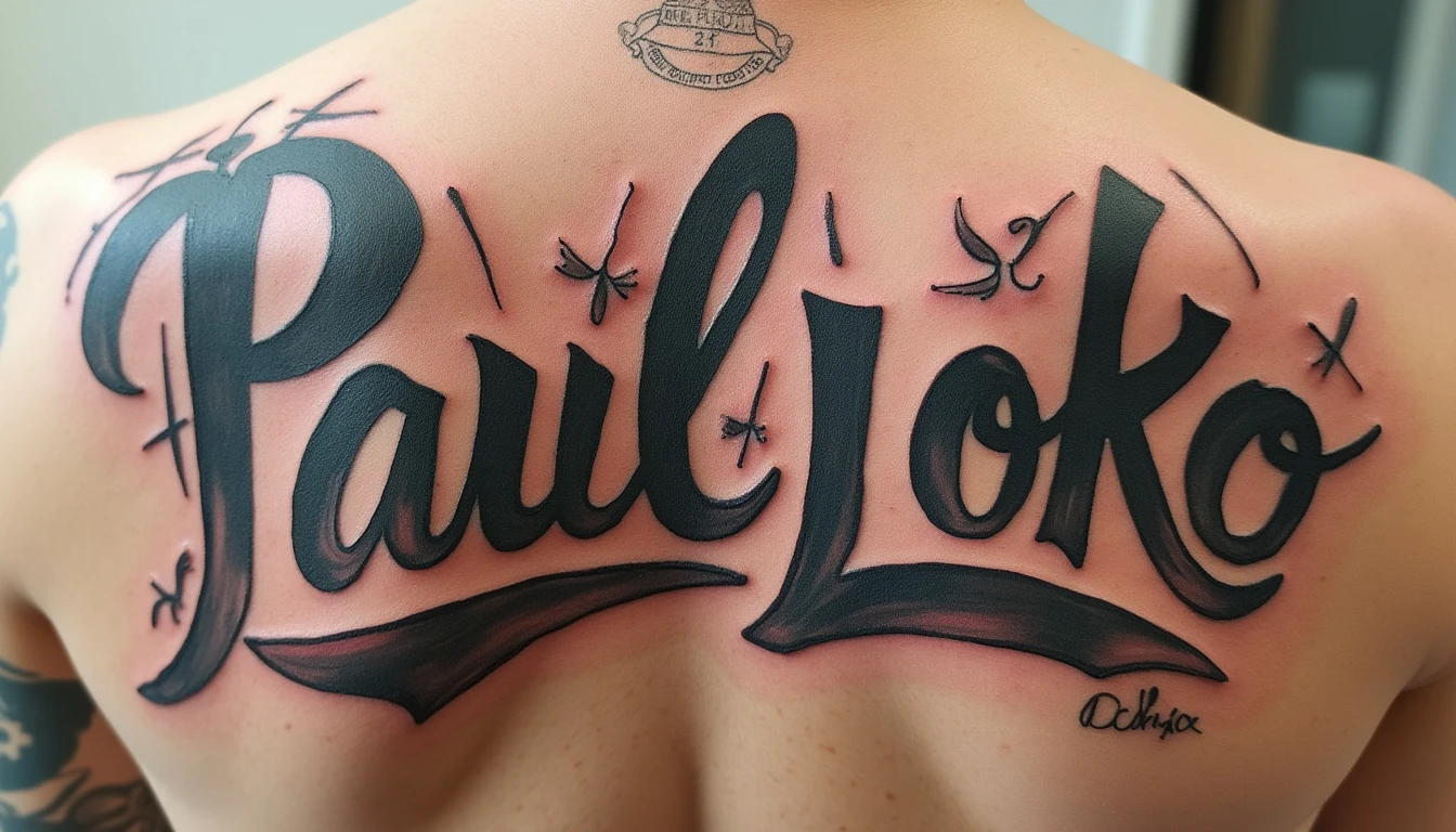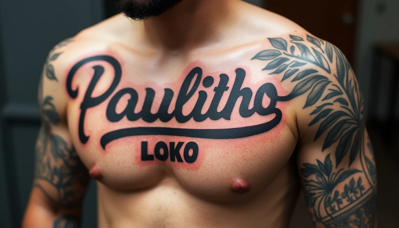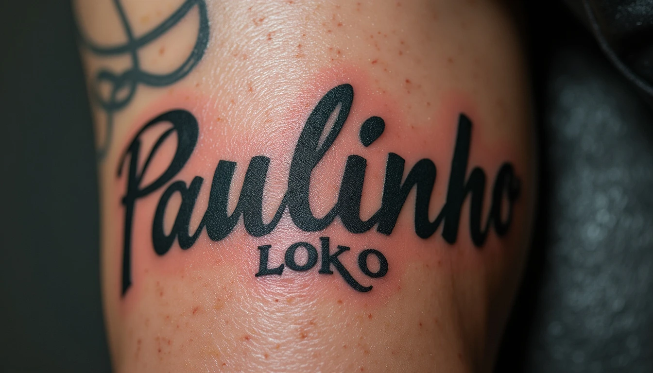 A hyper-realistic Tattoo text "Paulinho Loko"