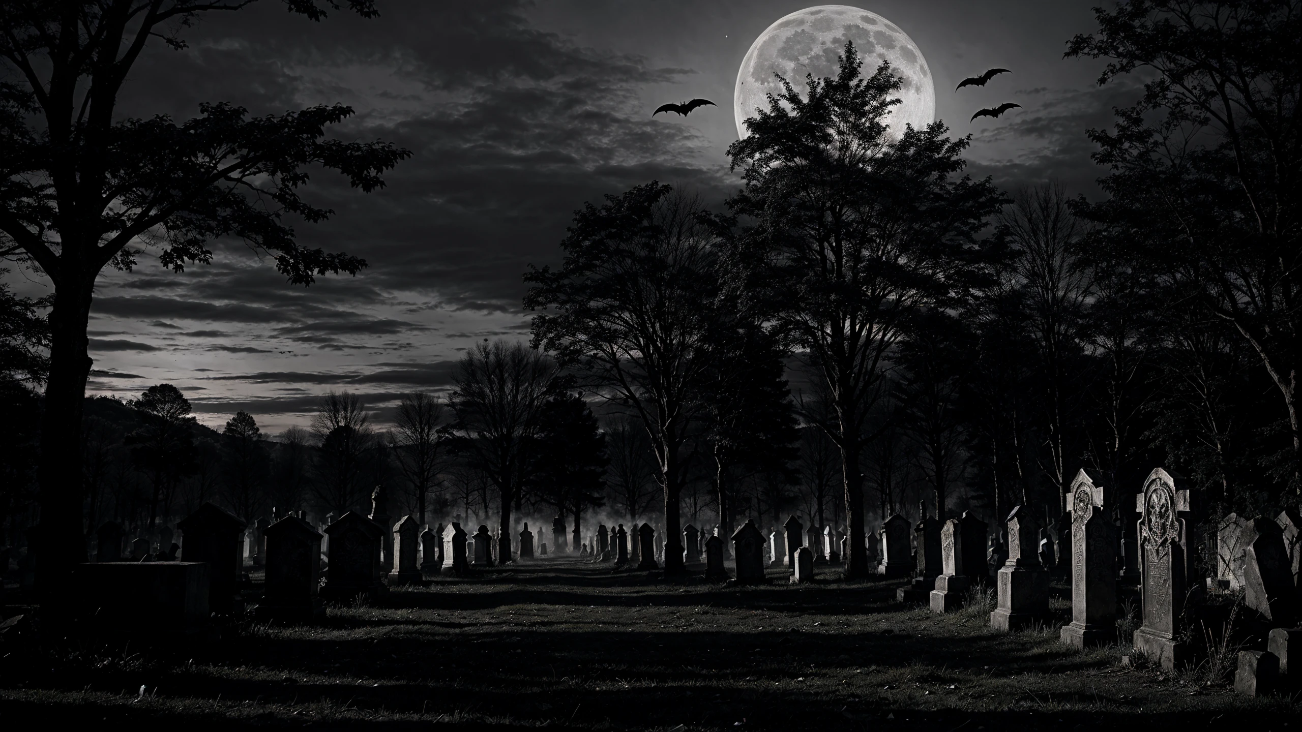 (vampire woman:1.2), (horror terror landscape), sharp focus, moonligh, full moon, glowing lights, burning torches, (bats) in the sky, (vampire gothic theme atmosphere), (old creepy mansion), interior, skull, skeleton, zombie, vampire coffin, red glowing flowers, skulls,fog, satanic ritual, fire,many crosses, far vampires, tombs, crosses, graveyard, iridiscent lights, (very detailed), (medium shot), zombies, dirty floor, trash, best quality, realistic, grey sky, dark tones, monochrome, natural light, backlight, shadows, high contrast, hdr, reflections, <lora:Detail Tweaker LoRA add_detail:0.7> <lora:depth_of_field_slider_v1:5> <lora:SDXLrender_v2.0:0.8> <lora:Vampirella SD1.5:0.5> <lora:blackandwhite:0.2>