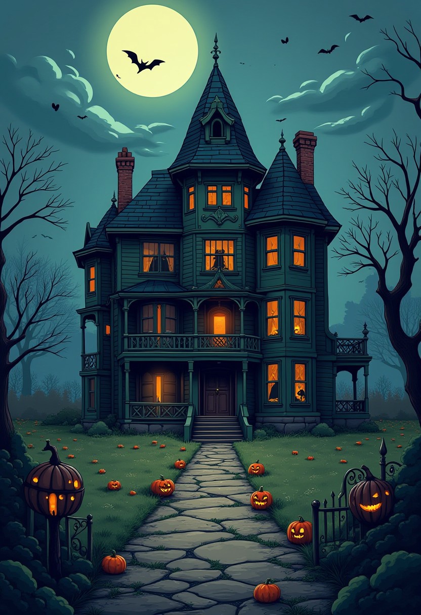 1qqq, isometric, haunted house, abandoned victorian mansion