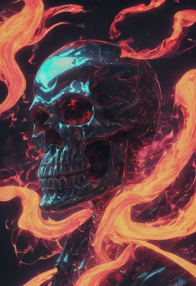 mad-nbla skull shooting flames out of the mouth <lora:Space_Nebula_FLUX:0.8>glow stick neon , shifting, dynamic flow, overlay <lora:- Flux1 - vanta_black_V2.0:1>