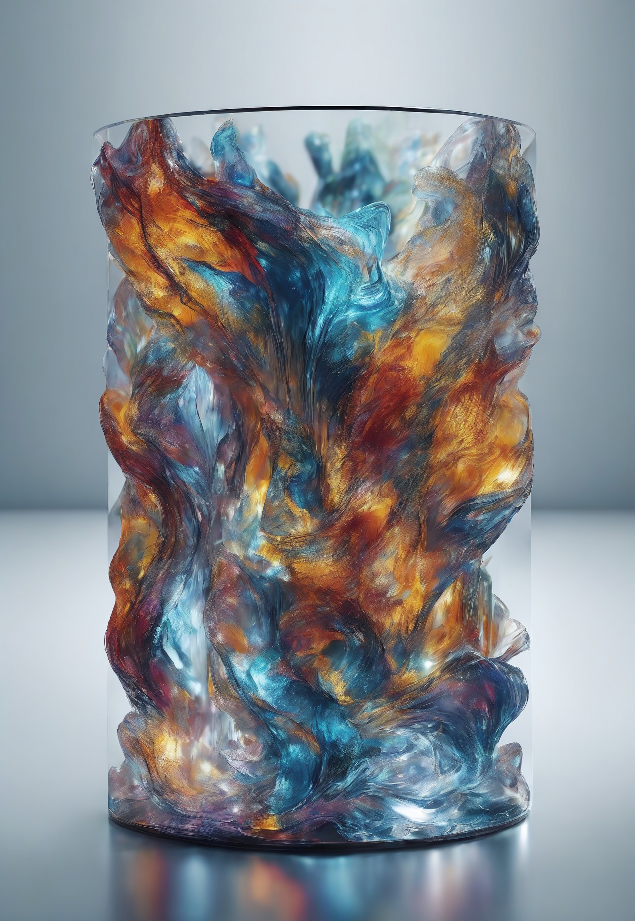 impressionism,Light from below the subject to create unusual, eerie effects., ((A humanoid figure with skin made of glass, glowing liquid swirling inside their transparent form.)1.4),Gentle texturing or shading to enhance without overpowering.,Intricate patterns and fine details for a sophisticated, ornate effect.,Emphasized features with distorted scaling for dramatic impact.,Depth of field to focus on foreground elements and blur the background.,synchromism,Bright colors and dynamic designs to evoke fun and excitement.,Depict a quiet moment of contemplation to evoke thoughtfulness and introspection., Cool Greys and Blues: Steel grey, slate blue, and ice blue for a sleek, professional appearance.,