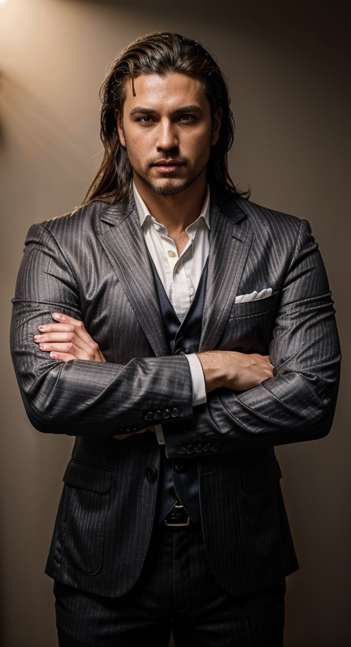 ArtStation, (masterpiece), (SFW:1.0), 1man, traditionally handsome, power suit, (long beard:1.0), well groomed hair, pocket watch, high class, gangster, pinstripe, twead, power, intimidation, handsome, attractive, alluring <lora:more_details_enhancer:0.15>