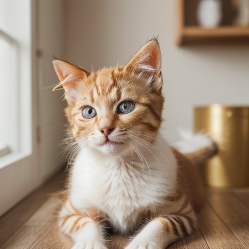 1cat, kitten, animal, golden fur, looking at the camera, smiling, eyes closed, solo, masterpiece, highres