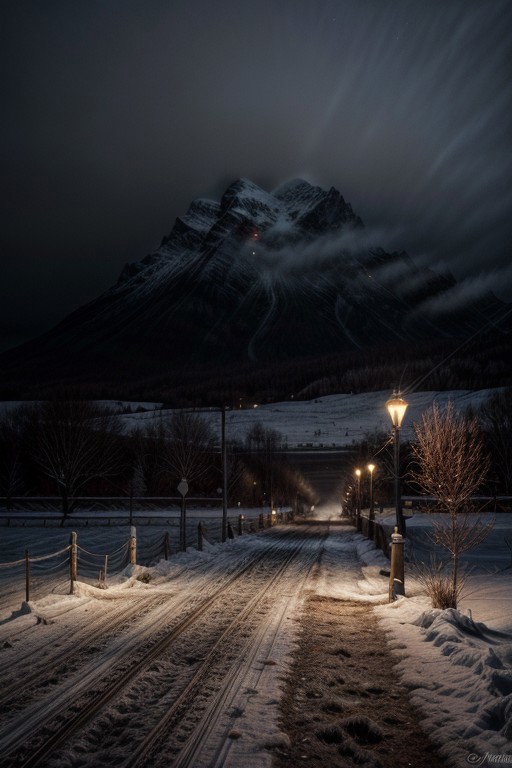 (masterpiece, best quality, highres:1.2), otherwordly snowy landscape, eerie atmosphere, night sky, foggy, harsh weather, snowstorm, blizzard,