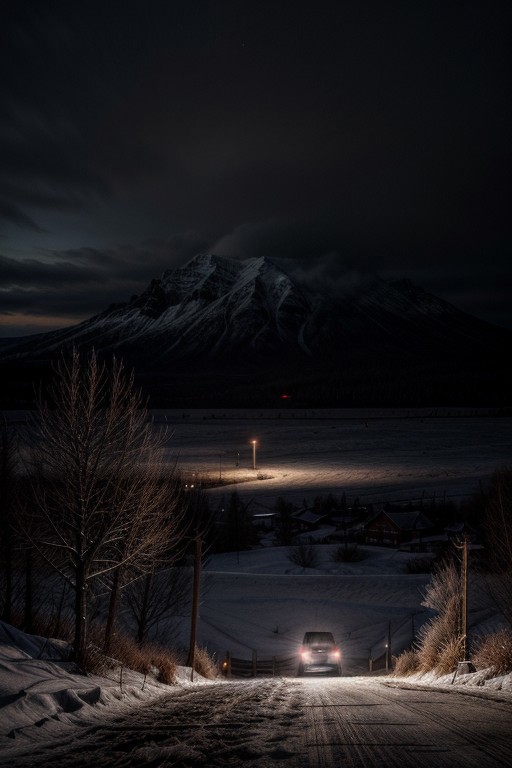 (masterpiece, best quality, highres:1.2), otherwordly snowy landscape, eerie atmosphere, night sky, foggy, harsh weather, snowstorm, blizzard,