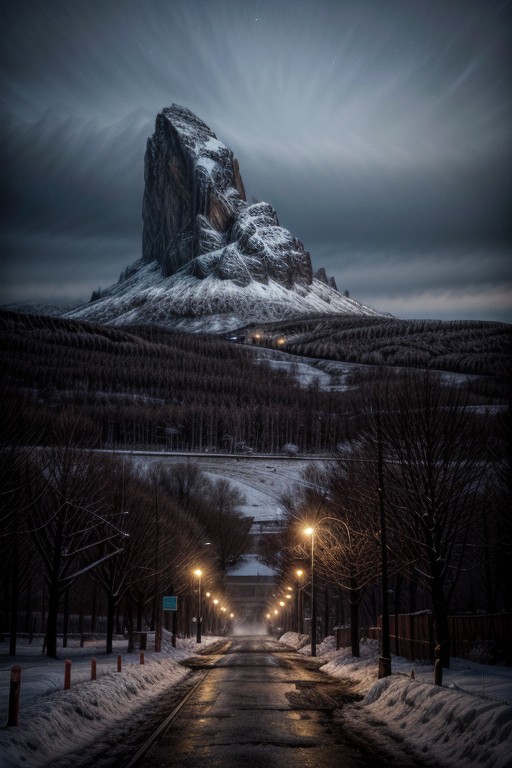 (masterpiece, best quality, highres:1.2), otherwordly snowy landscape, eerie atmosphere, night sky, foggy, harsh weather, snowstorm, blizzard,