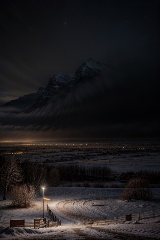 (masterpiece, best quality, highres:1.2), otherwordly snowy landscape, eerie atmosphere, night sky, foggy, harsh weather, snowstorm, blizzard,