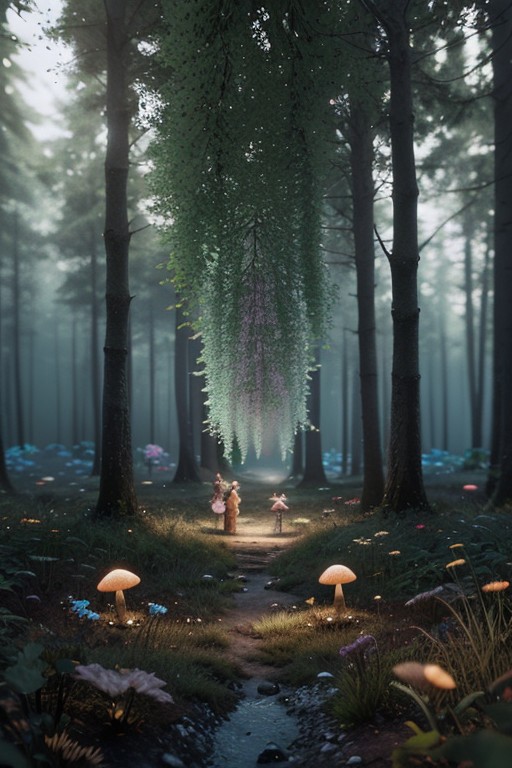 masterpiece, best quality, high quality,extremely detailed CG unity 8k wallpaper, An enchanting and dreamy scene of a fantasy forest, with towering trees, glowing mushrooms, and hidden fairy glens, creating a sense of mystique and enchantment, artstation, digital illustration, intricate, trending, pastel colors, oil paiting, award winning photography, Bokeh, Depth of Field, HDR, bloom, Chromatic Aberration ,Photorealistic,extremely detailed, trending on artstation, trending on CGsociety, Intricate, High Detail, dramatic, art by midjourney