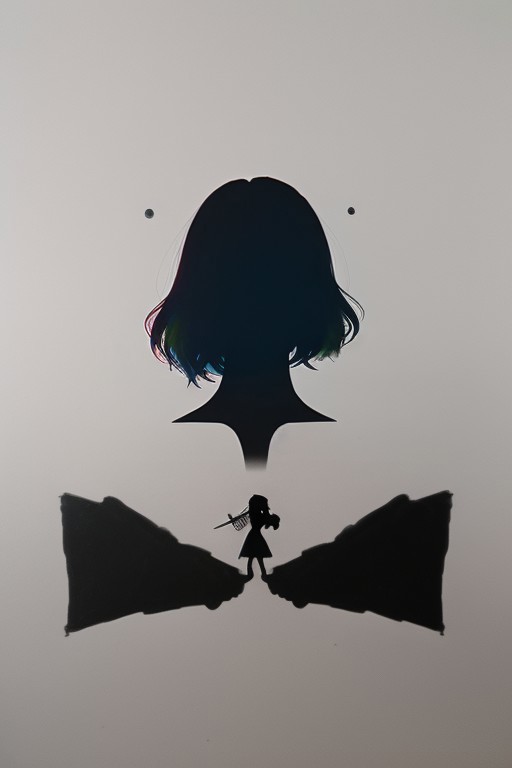 rainbow colored silhoutte outline against a dark background,a female reaper,anime,magical fantasy,universe,inspired by Maria Kreyn,Crystal,inverted,negative space,