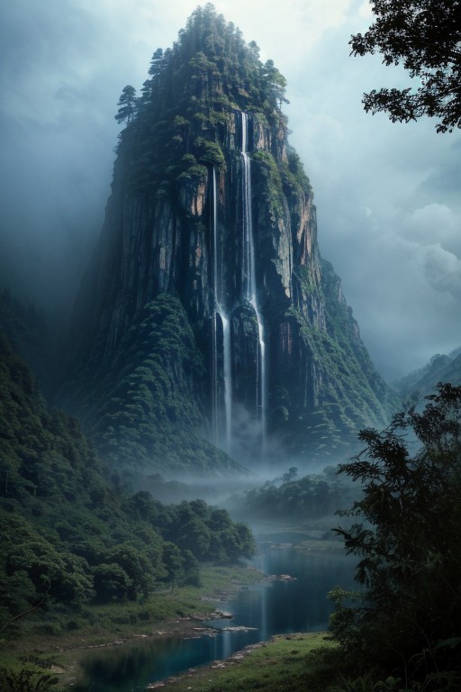 score_9, score_8_up, score_7_up, score_6_up, score_5_up, score_4_up, (absurdres, best quality, masterpiece:1.4), illustration, photorealistic, cinematic lighting, dynamic angle, perfect composition, planet, alien jungle, dense vegetation, towering trees, exotic wildlife, vibrant colors, thick fog, bioluminescence, hidden temple, unexplored wilderness
