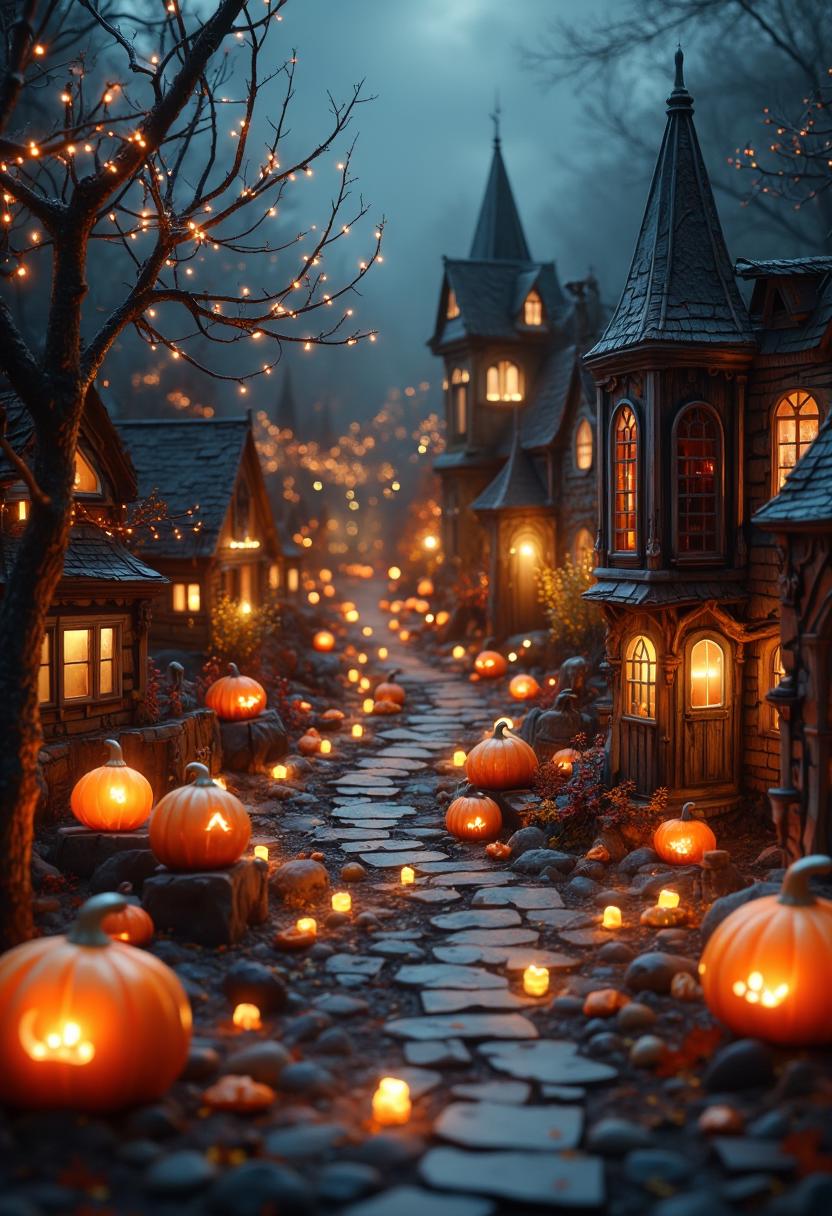 a miniature halloween village made of glossy and shiny and transparent candies, best quality, masterpiece, high quality, hyper detailed, <lora:flux_realism_lora:0.7> <lora:fluxenhancer:0.2> <lora:Aura_Flux:0.2> <lora:Dever_Flux_Enhancer:0.3>