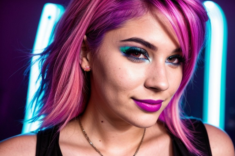 score_9, score_8_up, score_7_up, score_6_up, beautiful 19 year old girl, colored hair, neon lights, rave, crowd, nightime, dusk, smiling, ultra realistic, big lips, (masterpiece, best quality, highres:1.2), (photorealistic:1.2),