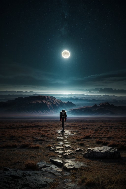 score_9, score_8_up, score_7_up, score_6_up, score_5_up, score_4_up, (absurdres, best quality, masterpiece:1.4), illustration, photorealistic, cinematic lighting, dynamic angle, perfect composition, planet, alien planet, strange flora, bioluminescent plants, multiple moons, rocky terrain, otherworldly sky, mysterious atmosphere, vast desert, futuristic exploration