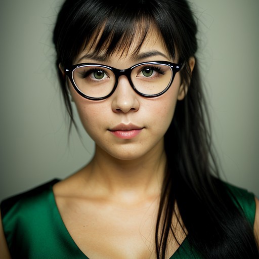 1girl pale-skin long-black-hair dark-green-eyes beautiful sensual pretty-face red-dress glasses realistic-photo