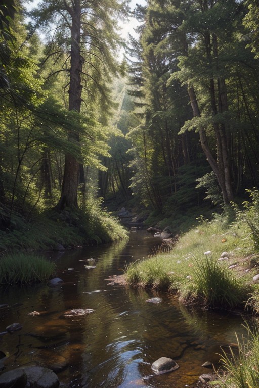 RAW photo, Greenland, delicate forest grove, wild nature, picturesque scenery, enchanting sunrays, beautiful sky, majestic landscape, pristine vegetation, desolate atmosphere, morning forest glade, creek, photorealistic, masterpiece, 64k, UHD, ultra detailed, vivid colors, high quality, sharp focus