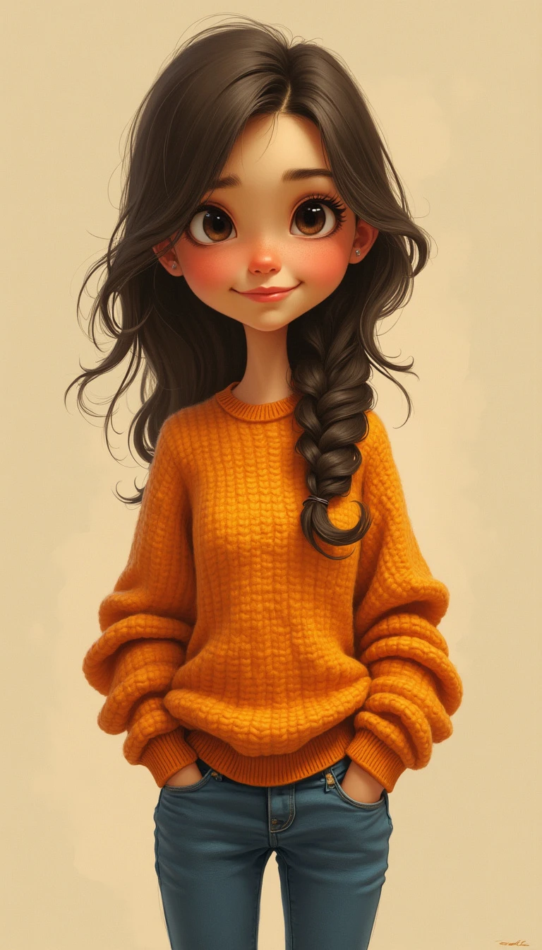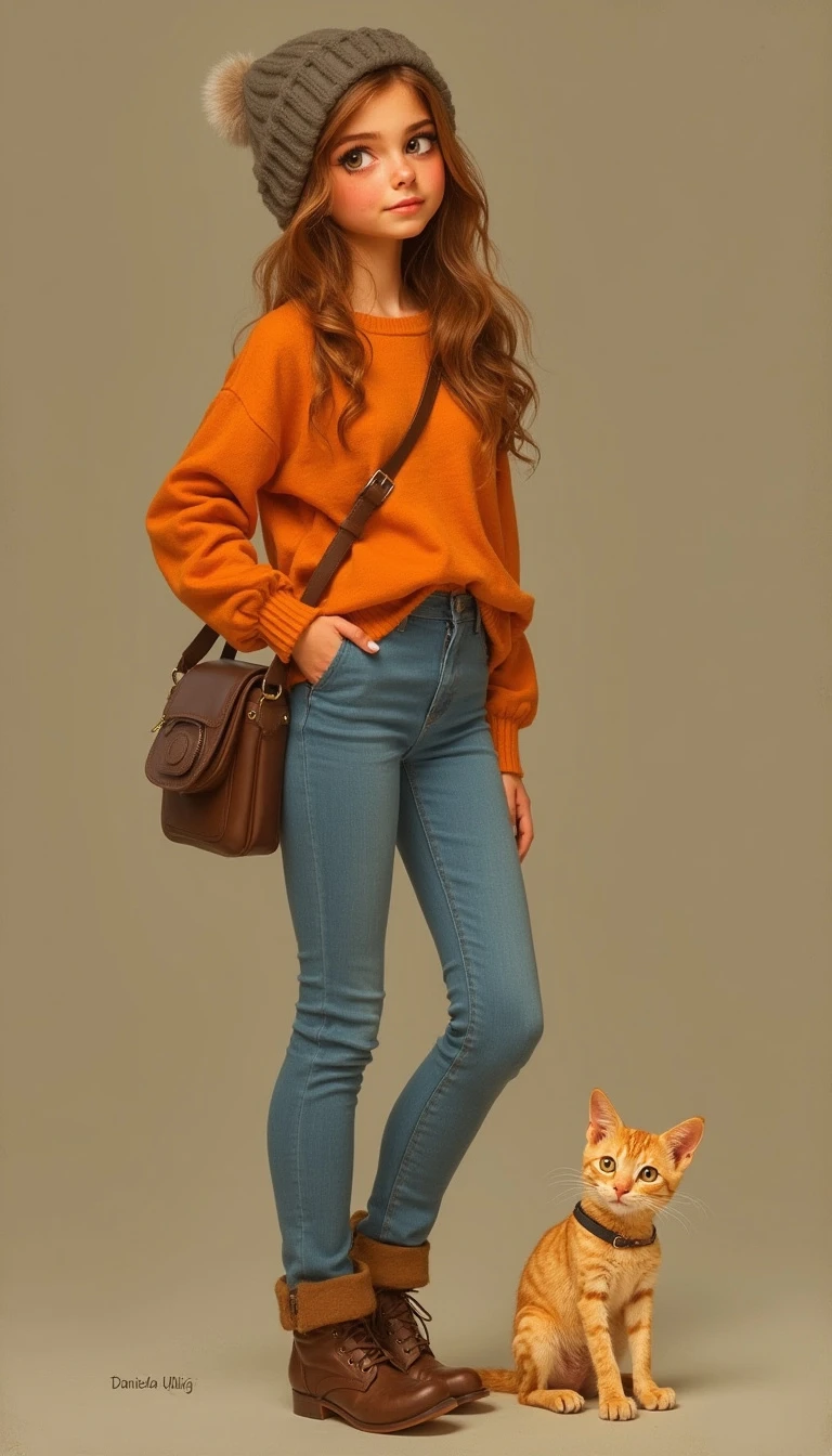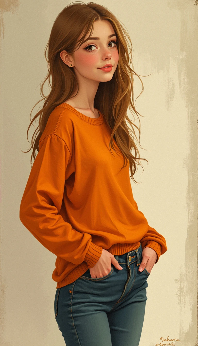 by Stan And Jan Berenstain, Style of Daniela Uhlig, she wears an orange sweater and jeans,