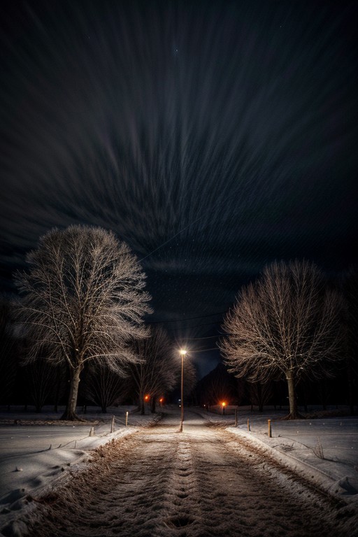 (masterpiece, best quality, highres:1.2), otherwordly snowy landscape, eerie atmosphere, night sky, foggy, harsh weather, snowstorm, blizzard,
