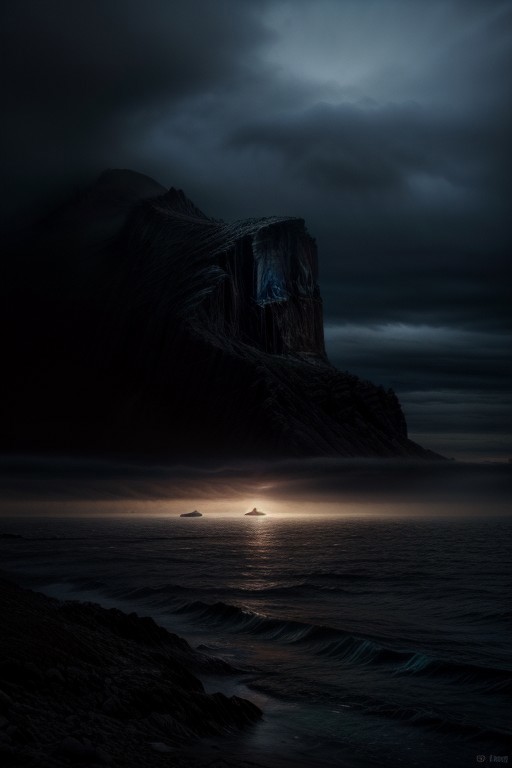 (masterpiece, best quality, highres:1.2), otherwordly icy desert void of human life, scary atmosphere, foggy, harsh weather, thunderstorm, gray cloudy sky, wild ocean,