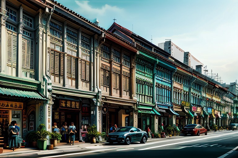 perfect proportions, perfect perspective, 8k, masterpiece, best quality, high_resolution, high detail, photorealistic, architecture, building, (shophouse, historical old cityscape, skyscraper, scenery), art deco architecture, east asian architecture, traditional, ancient, rustic, vintage, historical, heritage, pedestrian arcade, narrow facade, long windows, street, alley, road, (outdoor:1.2), Southeast Asia, George Town, Penang, Taiwan, Tainan, Singapore, subtropical environment, people, crowd, motorcycle, bike, street market, street vendors, day, dawn, CyberpunkWorld
