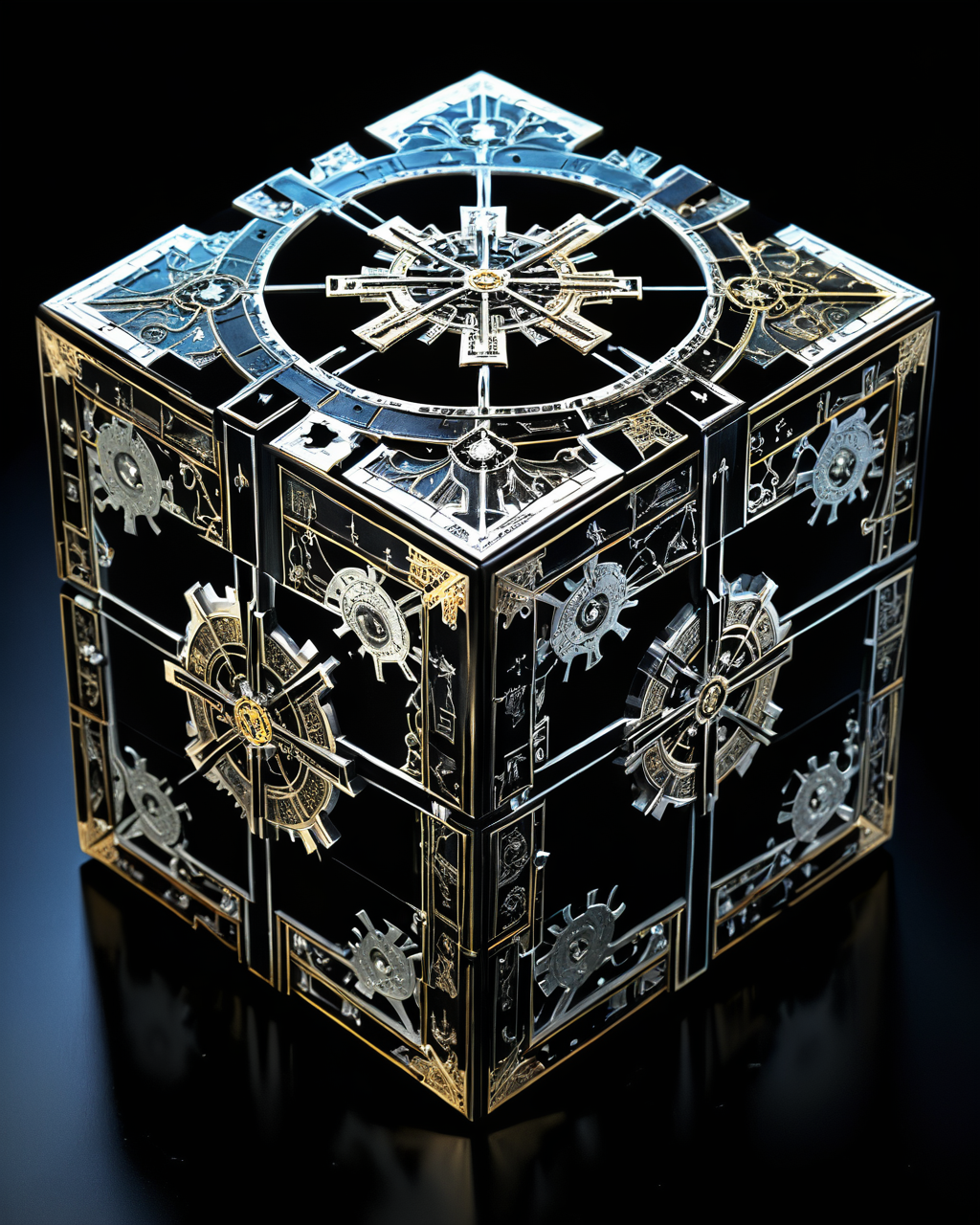 hellraiser puzzle box, black background, <lora:add-detail-xl:1.0>, <lora:xl_more_art-full_v1:0.4>, <lora:John Berkey Style:0.4> John Berkey Style page