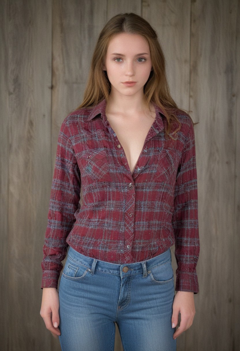 <lora:is_pretty:5>, (Real: 1.1), ((Is Pretty): 1.1), ((SFW): 1.1), Large_Format, Glamour_Photography, 4k, HD, (High_Resolution_Photograph: 1.1), Photo of, <lora:ByronyXL:1>, 1Girl, ((Age_18): 1.25), [Virgin], [90lbs], ((Pretty_Face): 1.5), ((Detailed): 1.1), (((Huge_Tits)): 3.9), ((((Anorexic))|[Hourglass_Body]): 2.5), (([Long_hair]|(Ginger): 1.9), ((Pale_Skin): 0.66), [Tiny_Waist], [Thighgap], ((Dressed): 1.1), ((Unbuttoned_Flannel-Shirt): 2.9), ((Skinny_Jeans): 2.9), ((Jewelry): 1.1), (((Standing_Posed)): 2.5), ((Cleavage): 1.5), (((Full_Body)): 2.4), ([Barn]|(Pasture)): 1.1), ((Field): 1.5), ((Fence): 1.1), [Hay], (Tractor), [Farm], Natural_Lighting, (((Eye_Level)): 1.1), (HasselBlad_X1D_II), 50mm, Fine_Texture,