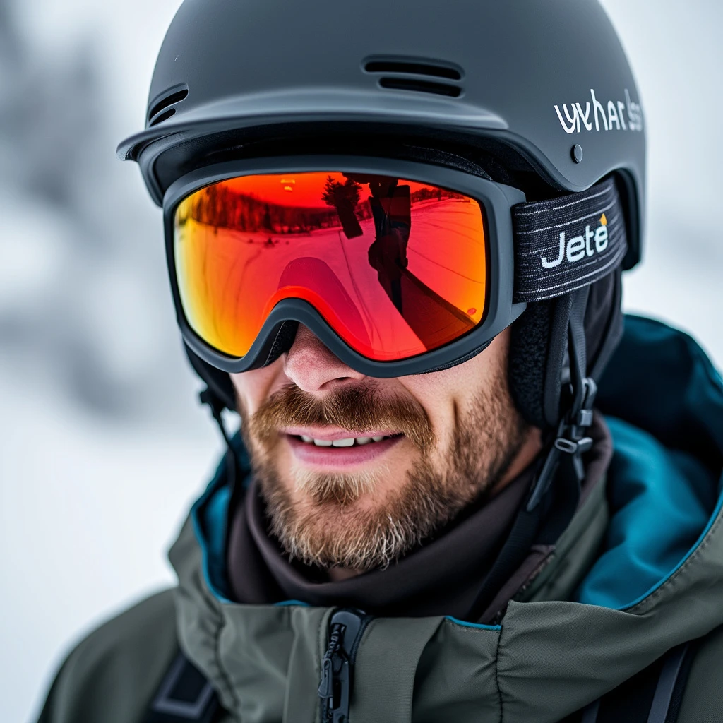 Close up shot portrait of a man with skiing goggles on, without helmet