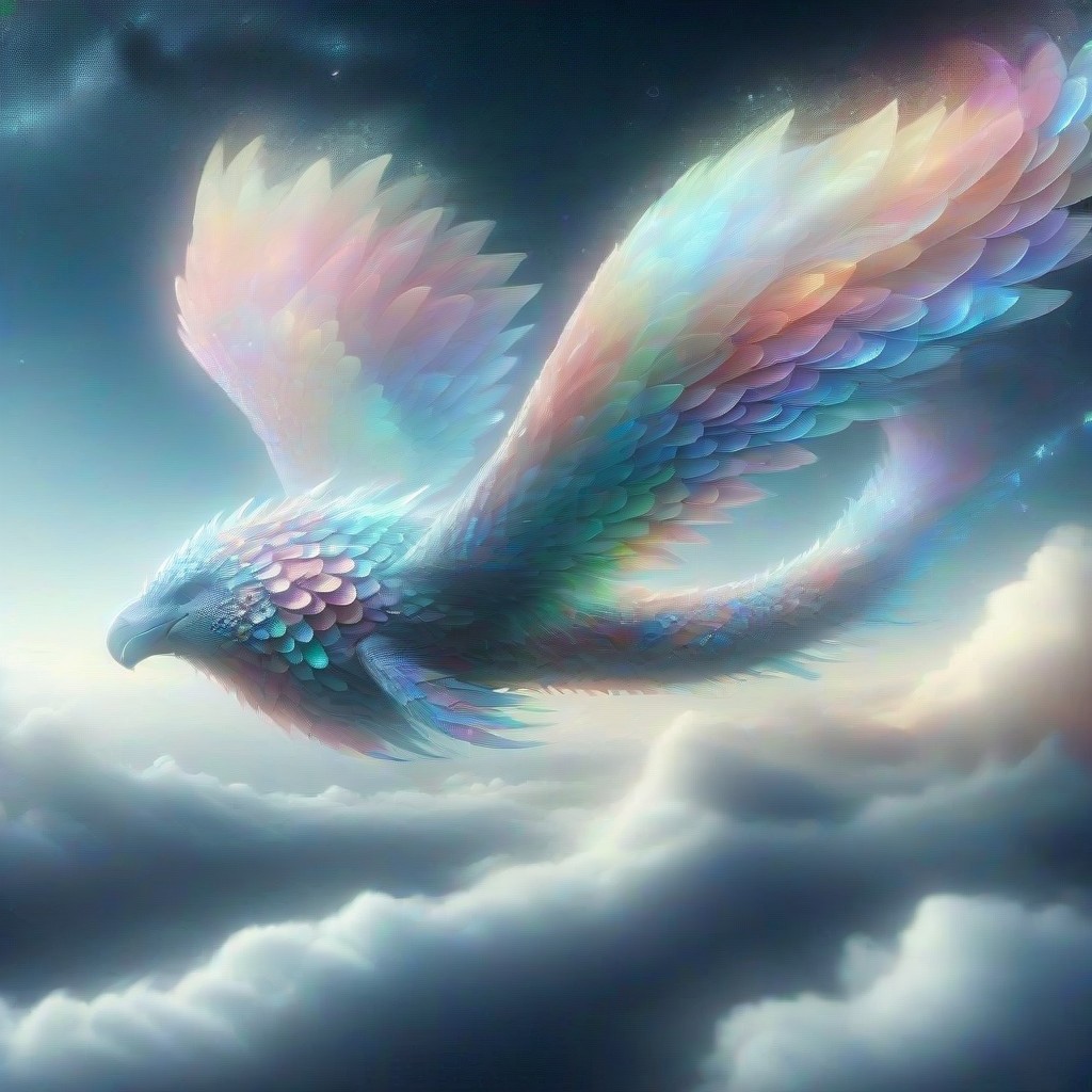 breathtaking digital illustration, surreal painterly style, view from below "Iridescent Adventures", majestic intimidating flying sky titan (a giant and enormous monster-beast-serpent) soaring through a fantasy world, metallic shifting color with changing light, covered with iridescent scales, p1nk1r1sc4l3s, easynegative expansive fantasy landscape, floating islands adorned with crystal forests, cascading waterfalls flowing upward, ancient temples perched atop towering cliffs, glowing flora, mystical creatures roaming terrain immense size of sky titan illustrated by tiny airships and floating cities appearing minuscule near its wings, vast mountain ranges and oceans tiny beneath its shadow, adventurous humans with grappling hooks and jetpacks approaching titan, highlighting colossal scale, daring exploration mischievous robotic raven perched on titan's massive beak, observing scene with gleaming eyes sky adorned with swirling auroras resembling Aurora Borealis, ethereal light cascading around titan, emphasizing otherworldly presence dynamic lighting, shimmering iridescent scales, dramatic low-angle perspective enhancing grandeur and intimidating aura epic, awe-inspiring atmosphere, combining fantasy and science fiction, embodying essence of "Iridescent Adventures"
