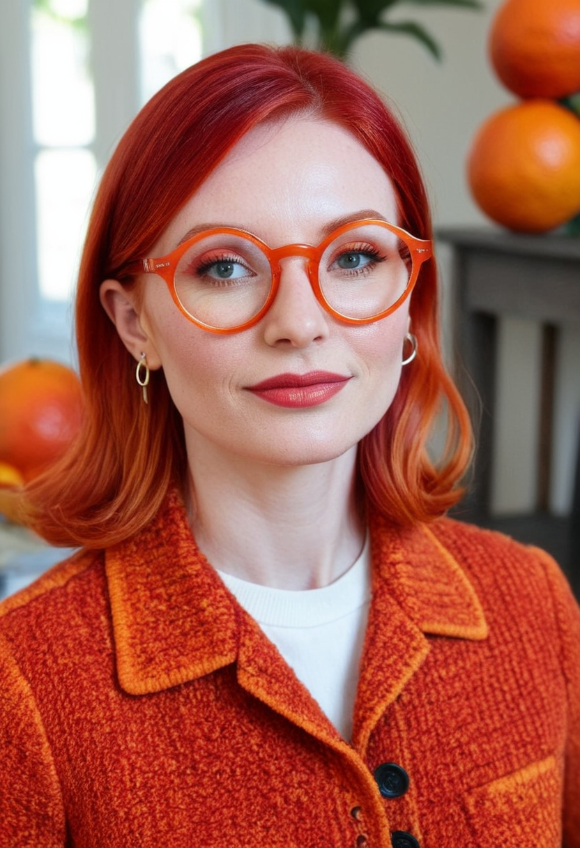 <lora:blood_orange_world_morph_sdxl:1>,blood orange style, Redhead round eyewear, living room in background,