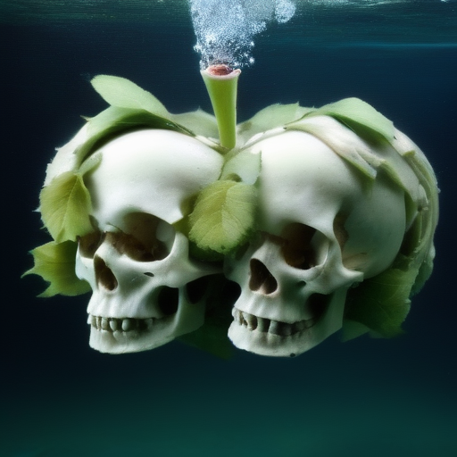<lora:SlimesSkullWM:1>,made of skulls,Apples ,underwater,
