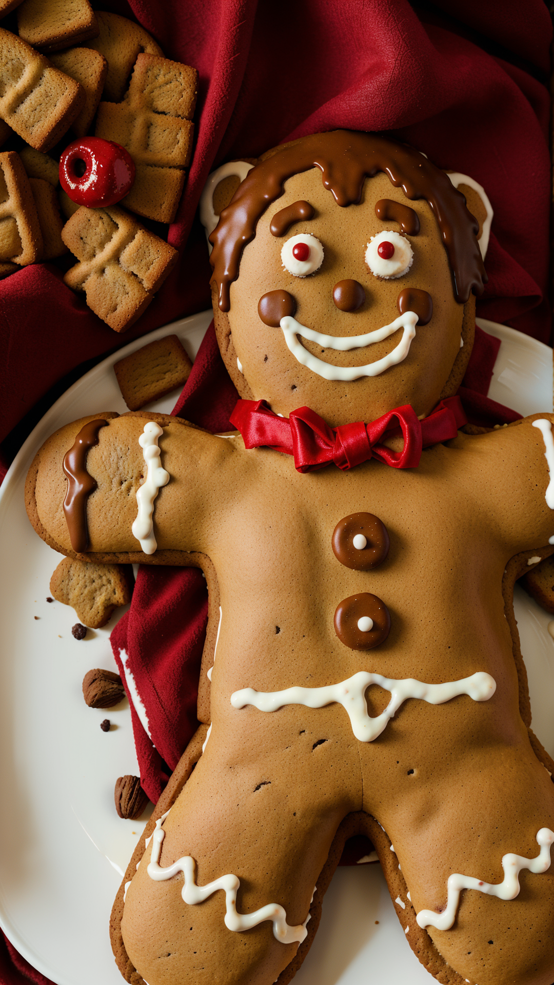 Thundarr the Barbarian, Gingerbread_Man, food, cookie, food focus, <lora:Gingerbread_Man:0.3> on a red velvet cloth