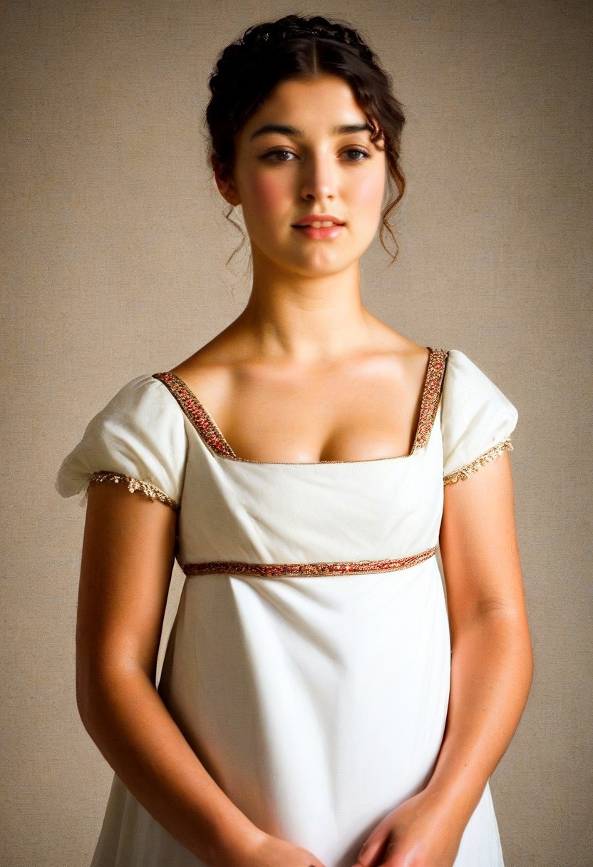 score_9, score_8_up, score_7_up, score_6_up, perfect anatomy, perfect proportions, best quality, masterpiece, high_resolution, high quality, aesthetic, absurdres, insanely detailed, BREAK (solo female, female focus, beautiful cozy, pretty, cute), upper body, dutch_angle, cowboy shot, BREAK (british girl, young girl, brown hair, hair bun, beautiful eyes), BREAK (r3g3ncy, regency period dress, white dress, bare arms, short sleeves), grassy meadow in the fall, BREAK cowboy shot, upperbody, stomach, perfect face, detail background, movie still, eye contact, vibrant, vivid, stardom, glamorous, retro, extraordinary achievement, award-winning, expressionist, dynamic, cinematic, cinematic still, emotional, harmonious, vignette, bokeh, cinemascope, moody, epic, gorgeous, detail background, Debutante ball, ball room, banquet, indoors, regency architecture
