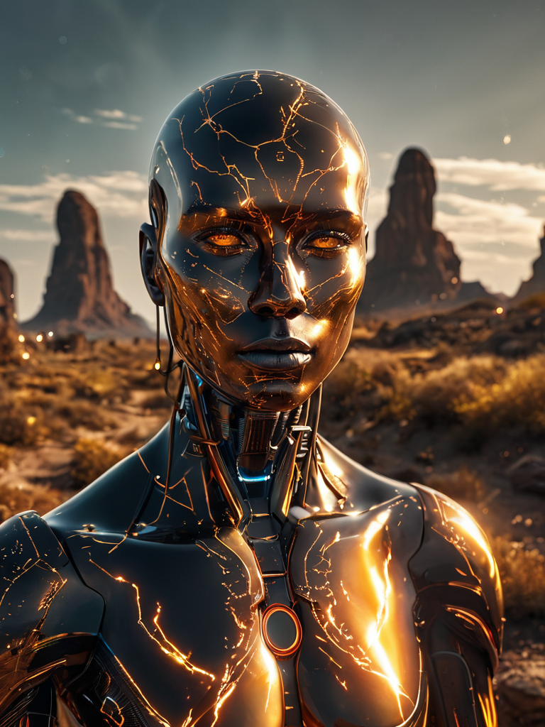 cinematic film still A high definition epic photograph of ((Ameca: Silicone-faced humanoid with expressive features. Can track movement, recognize faces, and express emotions4. Infront of Time Warp Landscape: A surreal landscape where time flows differently, showcasing melting clocks and floating objects.)) in the background. (dynamic:1.1), sun rays,, (taken by 15mm fisheye lens:1.1) = ((Vivid, HDR, Canon50, 8K, Hyper Realistic, Dramatic, Epic, Dynamic Contrast, Cinematic Lighting)) (((Zoomed Out, Far away Shot))) = =. Epic dynamic lighting . =vibrant, highly detailed, psychedelic ((Vivid, Epic, Dynamic contrast)) (((Zoomed out, Far away shot, In frame)), <lora:juggernautXL_version6Rundiffusion:0.8> <lora:crystalClearXL_ccxl:0.8> <lora:atlantysUltimanimeXL_atlasAtlantys:0.8><lora:epicrealismXL_v5Ultimate:0.8> <lora:glowneon_xl_v1:0.8> glowneon, glowing, sparks, lightning <lora:extremely_detailed:1>, - Generate images with sharp edges and fine details. - Produce high-resolution images with no blurriness or distortions. - Create images with clear and well-defined subjects. - Ensure that the output images have crisp lines and distinct features. - Generate images with vibrant colors and accurate tones. - Avoid noise or artifacts in the generated images. - Focus on producing clear textures and patterns in the images. - Emphasize clarity and definition in all aspects of the generated images. - Prioritize the sharpness and clarity of the main subjects in the images. - Optimize the AI model to produce clear and visually appealing images., Wlop . shallow depth of field, vignette, highly detailed, high budget, bokeh, cinemascope, moody, epic, gorgeous, film grain, grainy