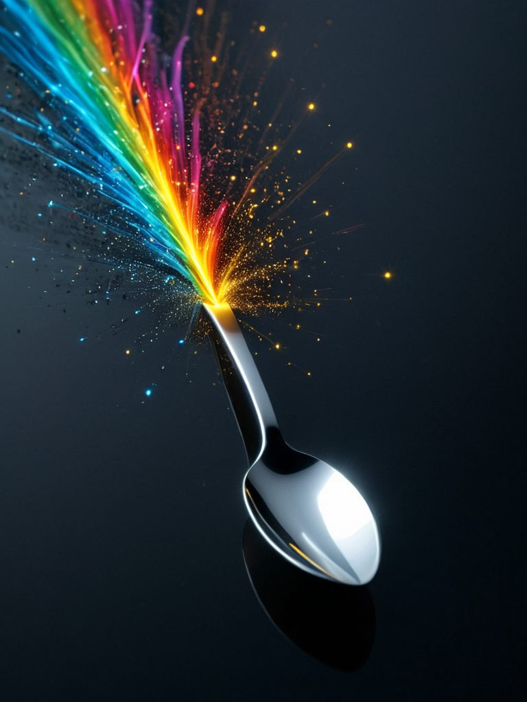 A high definition epic photograph of (( Reality-Bending Spoon: A utensil that can temporarily alter the laws of physics. , Infront of Chromatic Consciousness River: Color flows representing thought streams and emotional landscapes.)) in the background.Atmospheric River: A narrow corridor of concentrated moisture in the atmosphere that can lead to heavy rainfall when it makes landfall.(dynamic:1.1), sun rays,, (taken by 15mm fisheye lens:1.1),shots showing emotions, shiny reflective metal, Mechanical elements, rainbow flare elements slightly. = ((Vivid, HDR, Canon50, 8K, Hyper Realistic, Dramatic, Epic, Dynamic Contrast, Cinematic Lighting, Bright)) (((Zoomed Out, Far away Shot))) = =. Epic dynamic lighting . =vibrant, highly detailed, psychedelic ((Vivid, Epic, Dynamic contrast)) (((Zoomed out, Far away shot, In frame)), <lora:juggernautXL_version6Rundiffusion:0.8> <lora:crystalClearXL_ccxl:0.8> <lora:TransformersStyleXL:0.8> TransformersStyle <lora:glowneon_xl_v1:0.6> glowneon, glowing, sparks, <lora:atlantysUltimanimeXL_atlasAtlantys:0.8><lora:epicrealismXL_v5Ultimate:0.8> <lora:extremely_detailed:1> <lora:eyetune:1>, - Generate images with sharp edges and fine details. - Produce high-resolution images with no blurriness or distortions. - Create images with clear and well-defined subjects. - Ensure that the output images have crisp lines and distinct features. - Generate images with vibrant colors and accurate tones. - Avoid noise or artifacts in the generated images. - Focus on producing clear textures and patterns in the images. - Emphasize clarity and definition in all aspects of the generated images. - Prioritize the sharpness and clarity of the main subjects in the images. - Optimize the AI model to produce clear and visually appealing images., Wlop