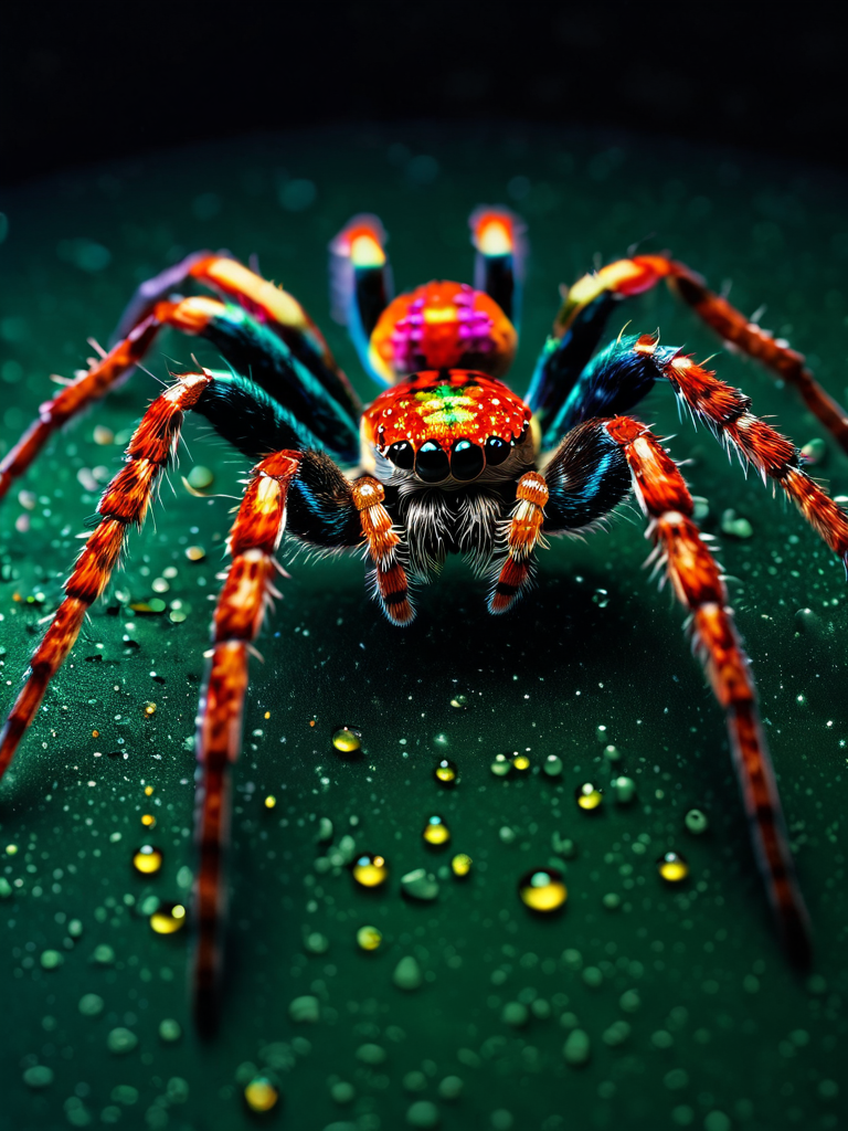 cinematic film still ((foodandveg Spider with Sporting Quantum Foam Surface: The skin bubbles with microscopic wormholes and virtual particles.)) The camera shot is Reflection Shot: Find reflective surfaces like water, mirrors, or glass, and position your subject so their reflection becomes part of the composition..(dynamic:1.1),sun rays,(taken by 12.5mm fisheye lens:1.1), Vivid, HDR, Canon50, 8K, Hyper Realistic, Dramatic, Epic, Dynamic Contrast, Cinematic Lighting, increased brightness)(((Zoomed Out, Far away Shot))) = =. Epic dynamic lighting , vibrant,highly detailed,psychedelic,((Psychedelic, rainbow glow )) ((Vivid, Epic, Dynamic contrast)) (((Zoomed out, Far away shot, In frame)), (((Cinematic))) <lora:juggernautXL_version6Rundiffusion:0.8> <lora:epicrealismXL_v5Ultimate:0.8> <lora:crystalClearXL_ccxl:0.8>, <lora:detailed_notrigger:0.8>, - Generate images with sharp edges and fine details. - Produce high-resolution images with no blurriness or distortions. - Create images with clear and well-defined subjects. - Ensure that the output images have crisp lines and distinct features. - Generate images with vibrant colors and accurate tones. - Avoid noise or artifacts in the generated images. - Focus on producing clear textures and patterns in the images. - Emphasize clarity and definition in all aspects of the generated images. - Prioritize the sharpness and clarity of the main subjects in the images. - Optimize the AI model to produce clear and visually appealing images., Wlop . shallow depth of field, vignette, highly detailed, high budget, bokeh, cinemascope, moody, epic, gorgeous, film grain, grainy