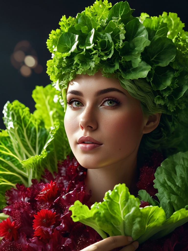 cinematic film still ((foodandveg Mngwa with With a Head of Lettuce for Hair: Sporting leafy green hair that's always fresh, this veggie is ready to give you the ultimate salad experience!)) The camera shot is Macro Close-Up: Use a macro lens to focus on tiny details like flower petals or insect eyes. Ensure good lighting to highlight textures and patterns..(dynamic:1.1),sun rays,(taken by 12.5mm fisheye lens:1.1), Vivid, HDR, Canon50, 8K, Hyper Realistic, Dramatic, Epic, Dynamic Contrast, Cinematic Lighting, increased brightness)(((Zoomed Out, Far away Shot))) = =. Epic dynamic lighting , vibrant,highly detailed,psychedelic,((Psychedelic, rainbow glow )) ((Vivid, Epic, Dynamic contrast)) (((Zoomed out, Far away shot, In frame)), (((Cinematic))) <lora:juggernautXL_version6Rundiffusion:0.8> <lora:epicrealismXL_v5Ultimate:0.8> <lora:crystalClearXL_ccxl:0.8>, <lora:detailed_notrigger:0.8>, - Generate images with sharp edges and fine details. - Produce high-resolution images with no blurriness or distortions. - Create images with clear and well-defined subjects. - Ensure that the output images have crisp lines and distinct features. - Generate images with vibrant colors and accurate tones. - Avoid noise or artifacts in the generated images. - Focus on producing clear textures and patterns in the images. - Emphasize clarity and definition in all aspects of the generated images. - Prioritize the sharpness and clarity of the main subjects in the images. - Optimize the AI model to produce clear and visually appealing images., Wlop . shallow depth of field, vignette, highly detailed, high budget, bokeh, cinemascope, moody, epic, gorgeous, film grain, grainy