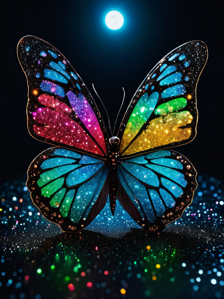 cinematic film still ((foodandveg Butterfly with With Glitter Bombs Inside: When you slice into this fruit, glitter explodes everywhereâit's the ultimate party starter in edible form!)) The camera shot is Starry Night Astrophotography: Shoot in dark locations using long exposures (15-30 seconds) with high ISO settings to capture stars, constellations, or the Milky Way..(dynamic:1.1),sun rays,(taken by 12.5mm fisheye lens:1.1), Vivid, HDR, Canon50, 8K, Hyper Realistic, Dramatic, Epic, Dynamic Contrast, Cinematic Lighting, increased brightness)(((Zoomed Out, Far away Shot))) = =. Epic dynamic lighting , vibrant,highly detailed,psychedelic,((Psychedelic, rainbow glow )) ((Vivid, Epic, Dynamic contrast)) (((Zoomed out, Far away shot, In frame)), (((Cinematic))) <lora:juggernautXL_version6Rundiffusion:0.8> <lora:epicrealismXL_v5Ultimate:0.8> <lora:crystalClearXL_ccxl:0.8>, <lora:detailed_notrigger:0.8>, - Generate images with sharp edges and fine details. - Produce high-resolution images with no blurriness or distortions. - Create images with clear and well-defined subjects. - Ensure that the output images have crisp lines and distinct features. - Generate images with vibrant colors and accurate tones. - Avoid noise or artifacts in the generated images. - Focus on producing clear textures and patterns in the images. - Emphasize clarity and definition in all aspects of the generated images. - Prioritize the sharpness and clarity of the main subjects in the images. - Optimize the AI model to produce clear and visually appealing images., Wlop . shallow depth of field, vignette, highly detailed, high budget, bokeh, cinemascope, moody, epic, gorgeous, film grain, grainy