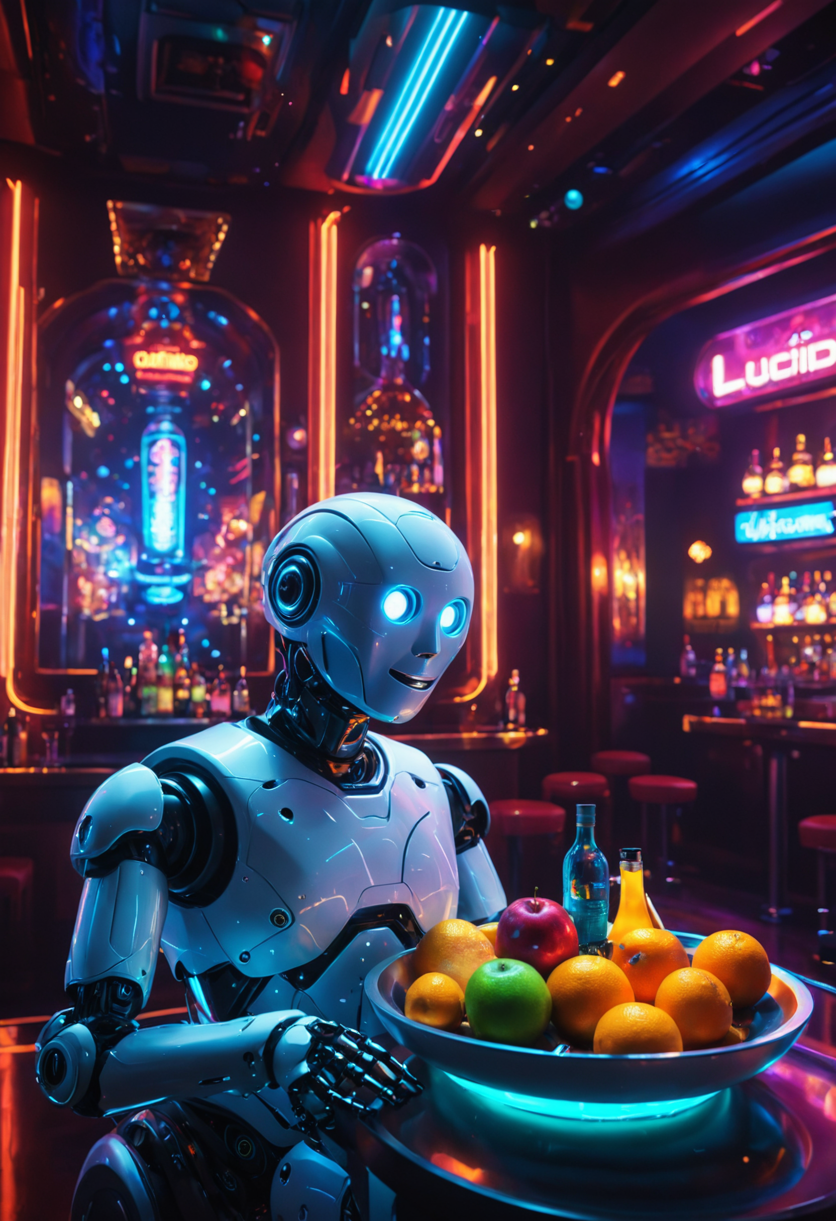 Psychedelic style ((( AI Lucid Dream Guide: A robot that interacts with users during lucid dreams to guide their experiences. ,12. Upscale Nightclub with VIP Bottle Service, ))) (((with exaggerated expressions))) Sporting Neon Tube Lighting: This fruit glows like a sign from a retro diner, brightening up your fruit bowl with its electric personality., Cinematic Storytelling Frames: Compose shots as if they were stills from a movie scene; use dramatic lighting, unique angles, and compelling subjects to evoke narrative depth in your photography..(dynamic:1.1),sun rays, (Vivid, HDR, Canon50, 8K, Hyper Realistic, Dramatic, Epic, Dynamic Contrast, Cinematic Lighting, increased brightness)(((Zoomed Out, Far away Shot))) = =. Epic dynamic lighting , vibrant,highly detailed,psychedelic,((Psychedelic, rainbow glow )) ((Vivid, Epic, Dynamic contrast)) (((Zoomed out, Far away shot, In frame)), (((Cinematic, Studio lighting, Contrast))) <lora:juggernautXL_version6Rundiffusion:0.8><lora:rundiffusionXL_beta:0.8><lora:epicrealismXL_v5Ultimate:0.8><lora:crystalClearXL_ccxl:1><lora:extremely_detailed:0.8> extremely detailed <lora:hyperkraximalism:0.3> hyperkraximalism <lora:QuadpipeQp_sdxlV2:0.4> <lora:xl_more_art-full_v1:0.1> <lora:RMSDXL_Darkness_Cinema:0.4> <lora:glowneon_xl_v1:0.8> glowneon, glowing, sparks, lightning, - Generate images with sharp edges and fine details. - Produce high-resolution images with no blurriness or distortions. - Create images with clear and well-defined subjects. - Ensure that the output images have crisp lines and distinct features. - Generate images with vibrant colors and accurate tones. - Avoid noise or artifacts in the generated images. - Focus on producing clear textures and patterns in the images. - Emphasize clarity and definition in all aspects of the generated images. - Prioritize the sharpness and clarity of the main subjects in the images. - Optimize the AI model to produce clear and visually appealing images., Wlop, By art germ . Vibrant colors, swirling patterns, abstract forms, surreal, trippy