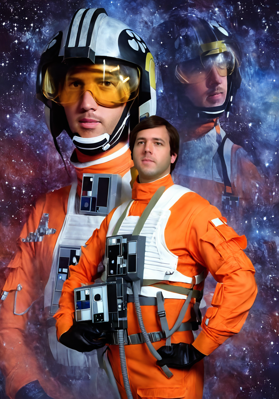 photo portrait, double exposure effect, a80psdxl, <lora:a80psdxl:1>, <lora:RebelpilotXLCopax:1> man in rebel pilot suit, starfield background, dark background