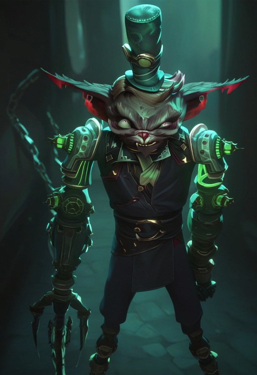 score_9, score_8_up, score_7_up, score_6_up, sm33ch, Smeechchembarons, Smeech /(league of legends arcane/), solo, looking at viewer, 1boy, hat, holding, jacket, weapon, male focus, belt, pants, holding weapon, armor, mask, glowing, chain, glowing eyes, top hat ,/(league of legends arcane/),