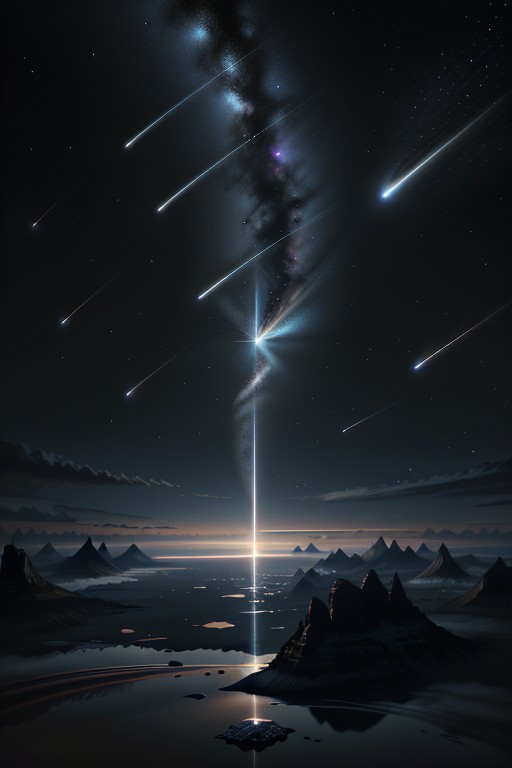 ((meteorite focus)),(The moment the meteorite falls),(extremely detailed CG unity 16k wallpaper, hyper detailed, delicate background, depth of field,ultra high res:1.3), (dark night:1.1), (stars in the sky:1.2), <lora:meteorshower:0.6> (dense meteor, dense colorful meteor shower,dense shooting stars falling down :1.2),comet,sea,wave,star The moment the meteorite falls,burning,explosion